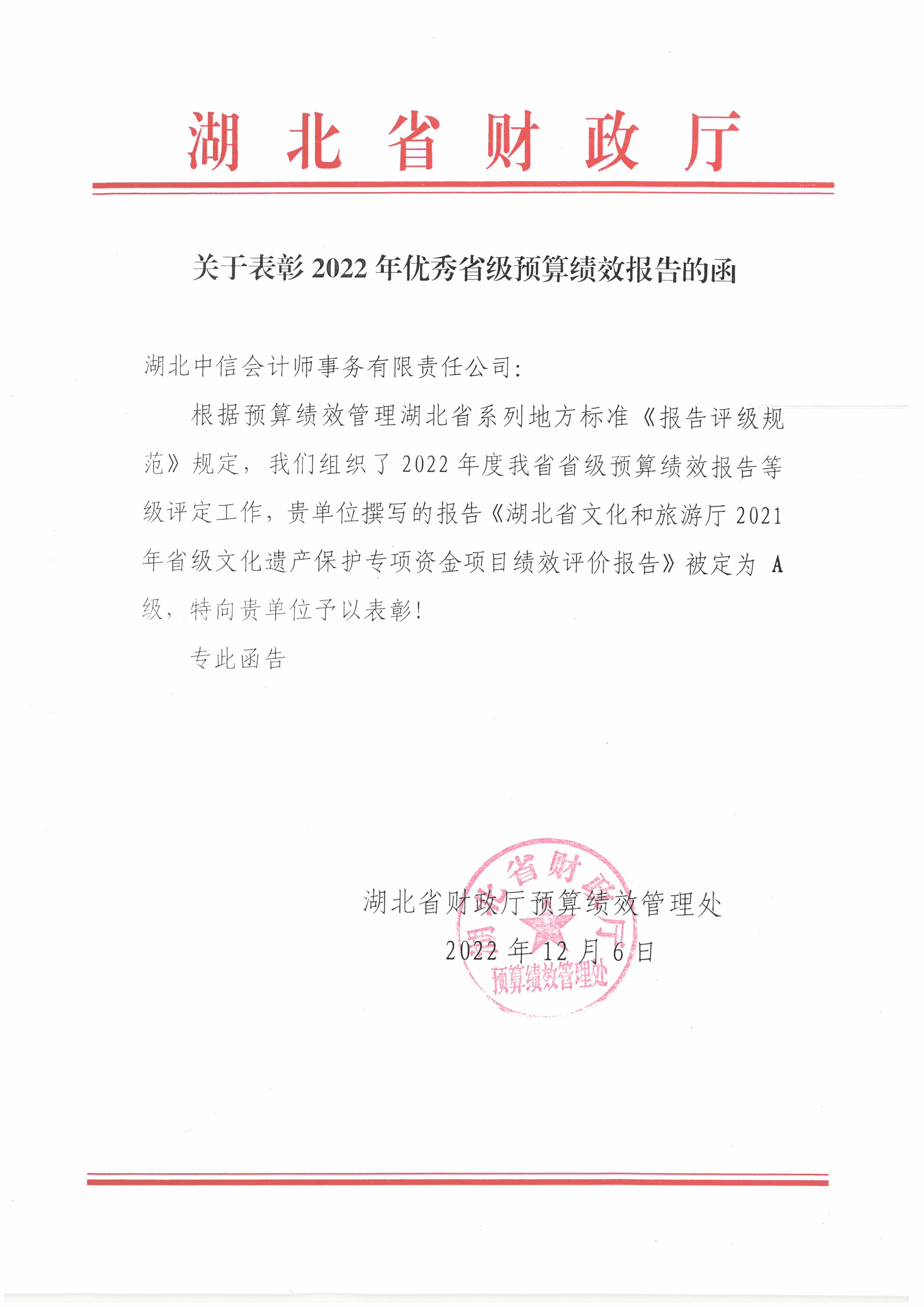 2022年優(yōu)秀省級(jí)預(yù)算績(jī)效報(bào)告函