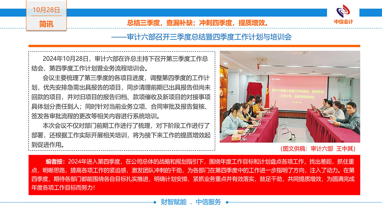 ——湖北中信會計師事務所開展2024年度工作盤點暨第四季度工作推進會 -