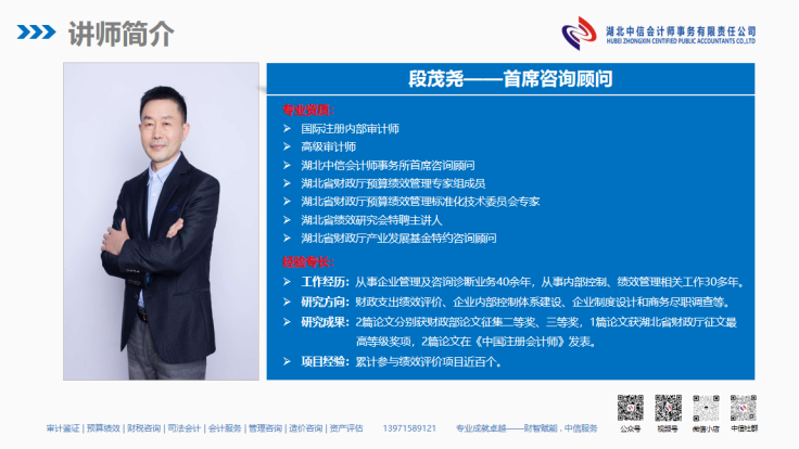 湖北中信會(huì)計(jì)師事務(wù)所持續(xù)深耕預(yù)算績(jī)效管理業(yè)務(wù)領(lǐng)域10多年,始終緊抓“服務(wù)國(guó)家建設(shè)”的主題,秉持“專業(yè)創(chuàng)造價(jià)值”的理念,以政策為綱領(lǐng)、以需求為導(dǎo)向、以專業(yè)為力量,堅(jiān)持“以專業(yè)研究指導(dǎo)執(zhí)業(yè)實(shí)踐,以執(zhí)業(yè)實(shí)踐豐富經(jīng)驗(yàn)萃取,以經(jīng)驗(yàn)萃取充實(shí)專業(yè)咨詢”和“以執(zhí)業(yè)實(shí)踐孵化專業(yè)隊(duì)伍,以專業(yè)隊(duì)伍提升服務(wù)質(zhì)量,以服務(wù)質(zhì)量打造業(yè)務(wù)品質(zhì)”的“理論+實(shí)踐”雙循環(huán)和“專業(yè)+服務(wù)”雙結(jié)合的模式,形成預(yù)算績(jī)效管理和績(jī)效評(píng)價(jià)相關(guān)專業(yè)服務(wù)項(xiàng)目、定制化培訓(xùn)課程和專業(yè)咨詢服務(wù)等產(chǎn)品系列,推進(jìn)公司預(yù)算績(jī)效管理業(yè)務(wù)品牌打造和專業(yè)服務(wù)品質(zhì)提升,累計(jì)為省、市、區(qū)40多個(gè)政府部門和企事業(yè)單位提供專業(yè)服務(wù),賦能客戶單位預(yù)算績(jī)效管理能力提升和科學(xué)、規(guī)范的預(yù)算績(jī)效管理體系構(gòu)建,時(shí)刻準(zhǔn)備著為財(cái)政資金預(yù)算管理保駕護(hù)航及提質(zhì)增效注入專業(yè)動(dòng)能和實(shí)效價(jià)值,助力省、市、區(qū)大財(cái)政體系建設(shè),為經(jīng)濟(jì)社會(huì)的高質(zhì)量發(fā)展,貢獻(xiàn)中信專業(yè)智慧和力量!